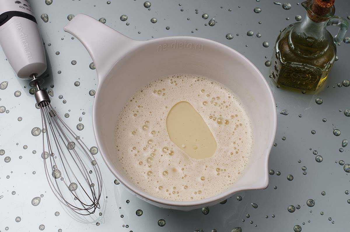 6. Влить растительное масло, перемешать и тесто для тонких блинов готово!