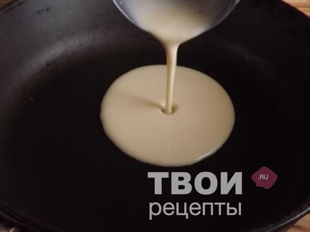 - На сковороду выливайте тесто тонким слоем.