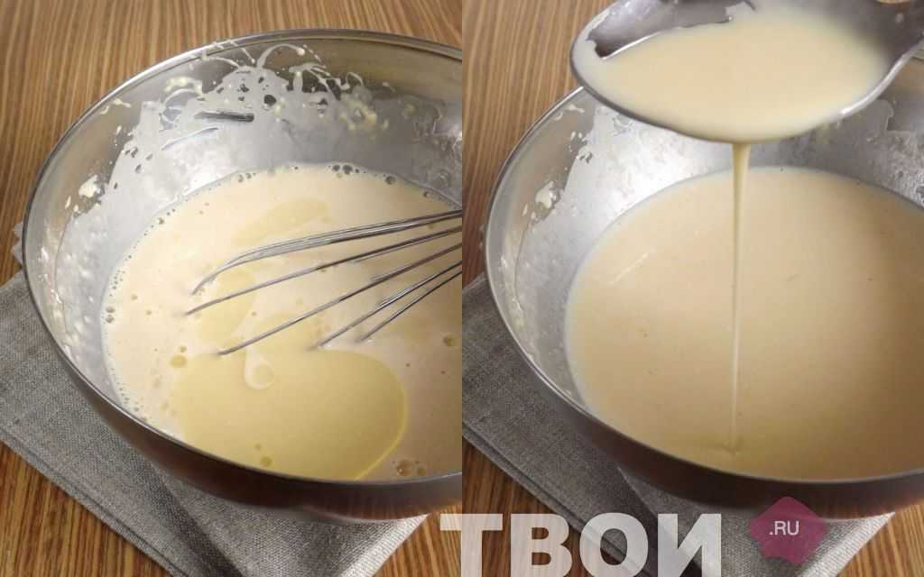 - В процессе готовки тонких блинов не забываем периодически помешивать тесто.