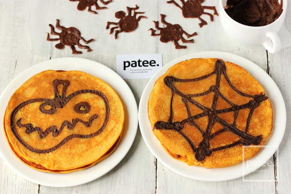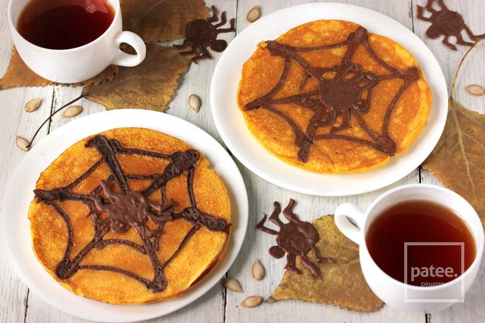 Описание рецепта — Тыквенные блины с паутинкой на Хэллоуин: