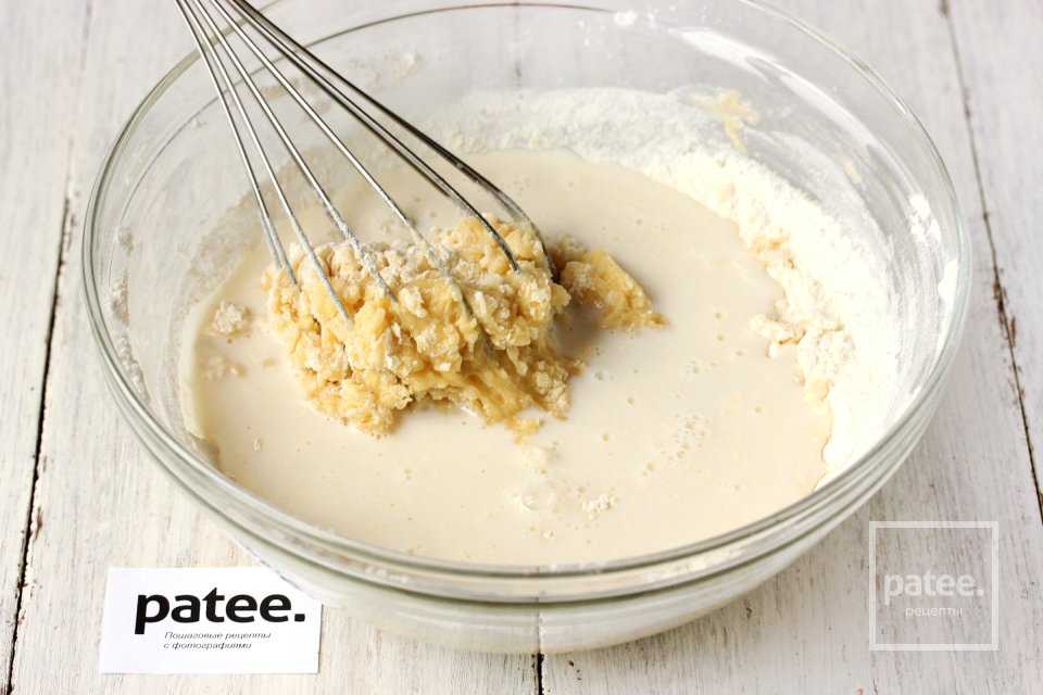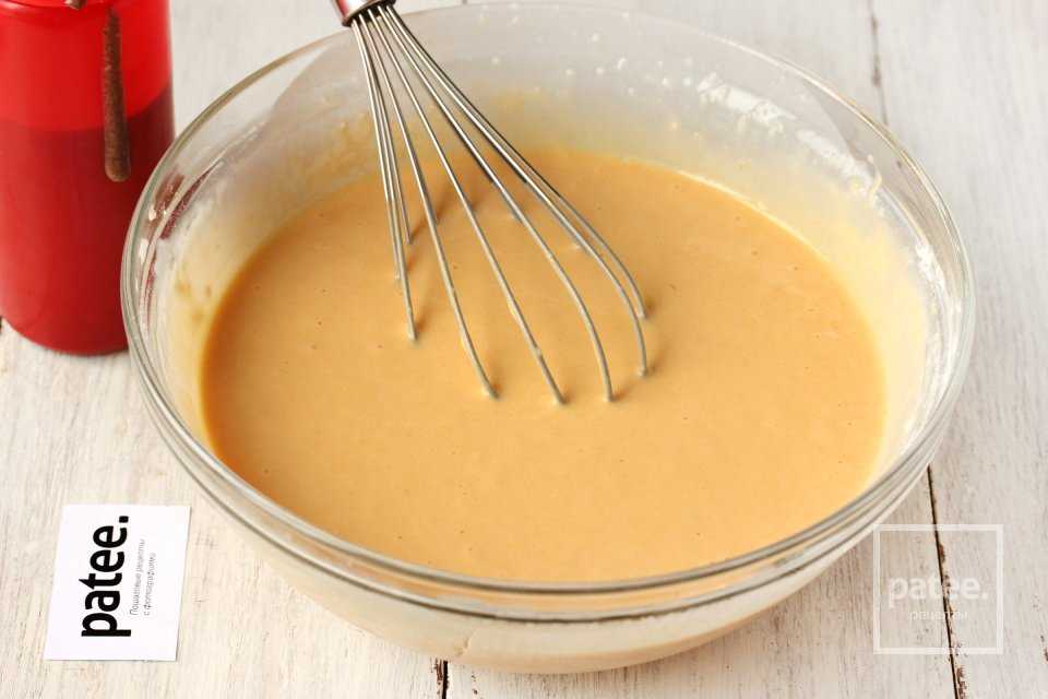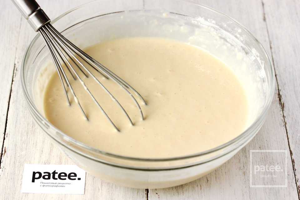 В конце вымешивания у нас должно получиться однородное тесто блинной консистенции.