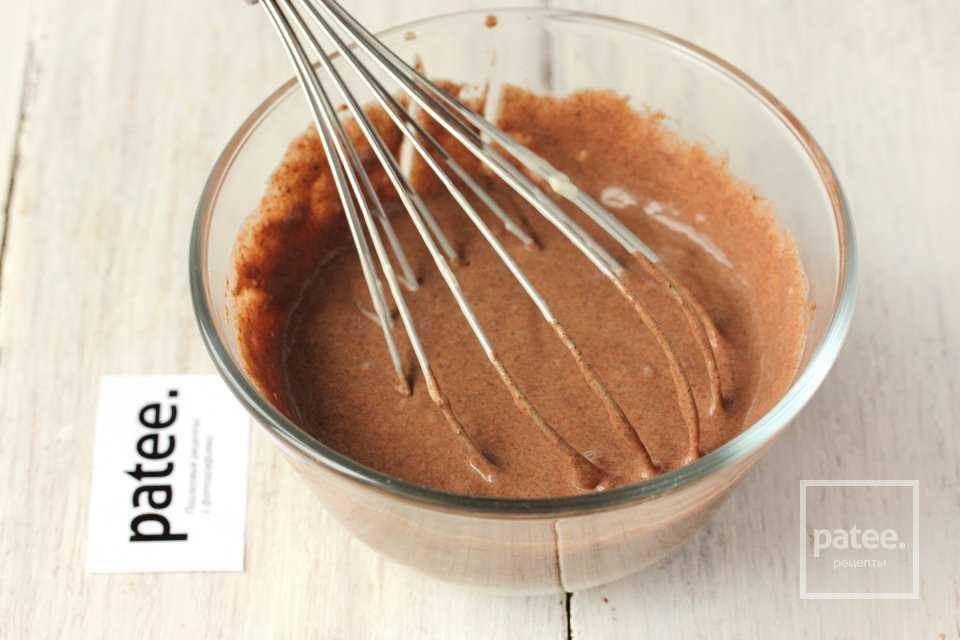 Перемешиваем шоколадное тесто венчиком, чтобы не было комочков. Переливаем его в удобную ёмкость или небольшую бутылку с тонким носиком (отверстием).