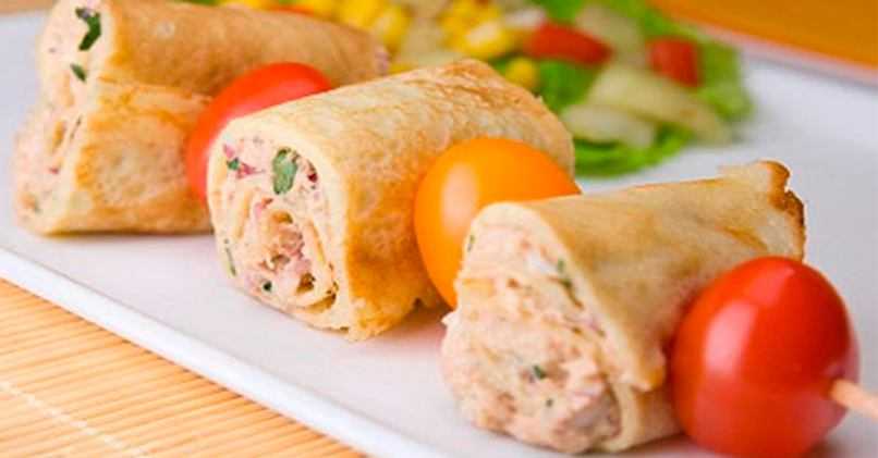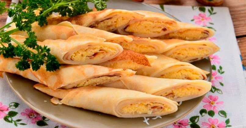 Сделайте блинные трубочки с сырной начинкой, равномерно подрумяньте на сковороде, чтобы сыр внутри немного расплавился. Разрежьте наискосок – будет смотреться очень аппетитно. Можно подавать и к горячему чаю, и как закуску к горячительным напиткам.