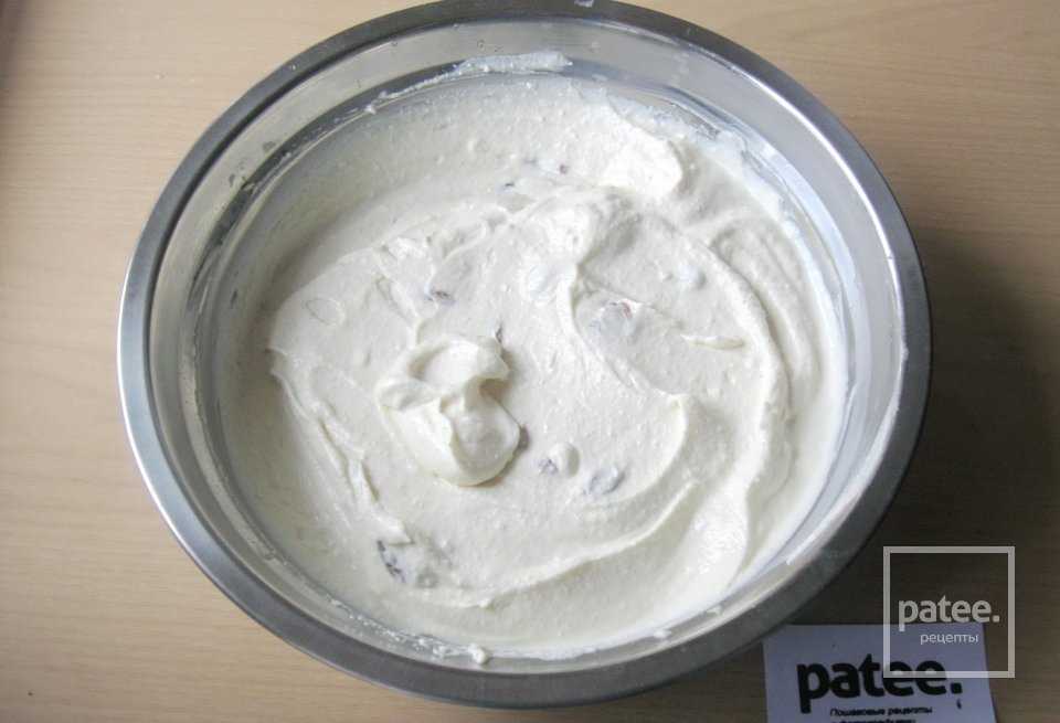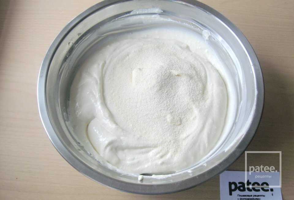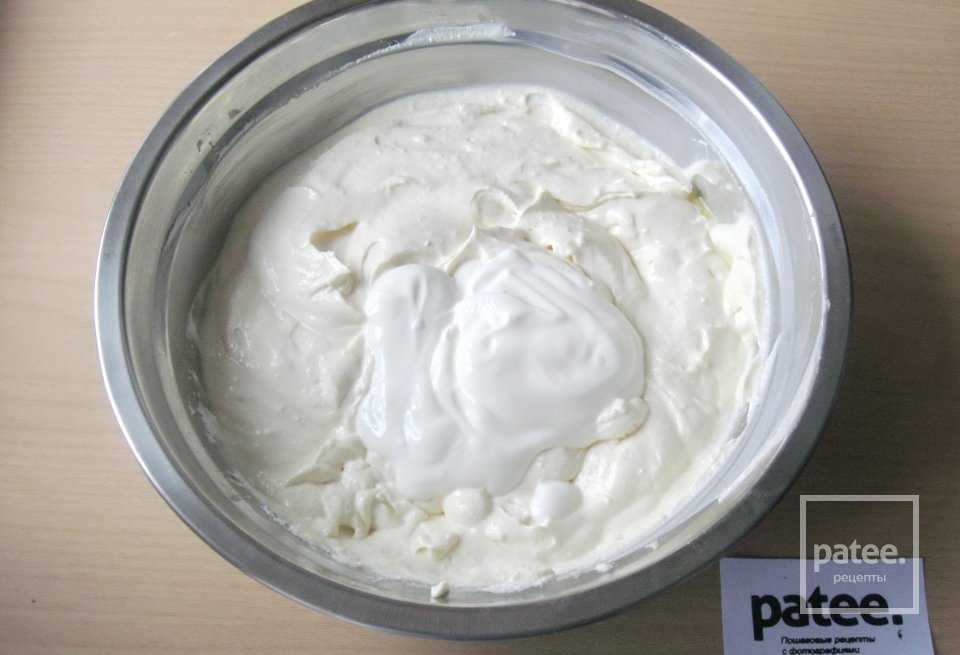 - Положить сметану. Размешать массу. Если она получится слишком густой, добавить немного молока.