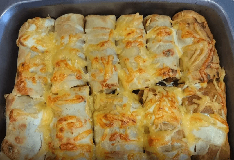 Запеченные под сыром блинные конвертики