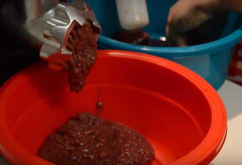 - Разделив ее на небольшие кусочки, с помощью мясорубки, комбайна или чоппера превращаем печенку в однородную кашеобразную массу. Вместе с ней желательно перемолоть и сочные кусочки почищенной и разрезанной луковицы.