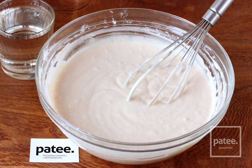 Тесто по консистенции должно получиться как густая сметана, однородная, без комков.