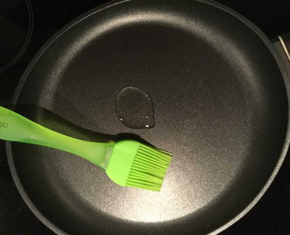 - Хорошенько раскалить сковороду. Можно не наливать масло, так как оно уже есть в самом тесте.