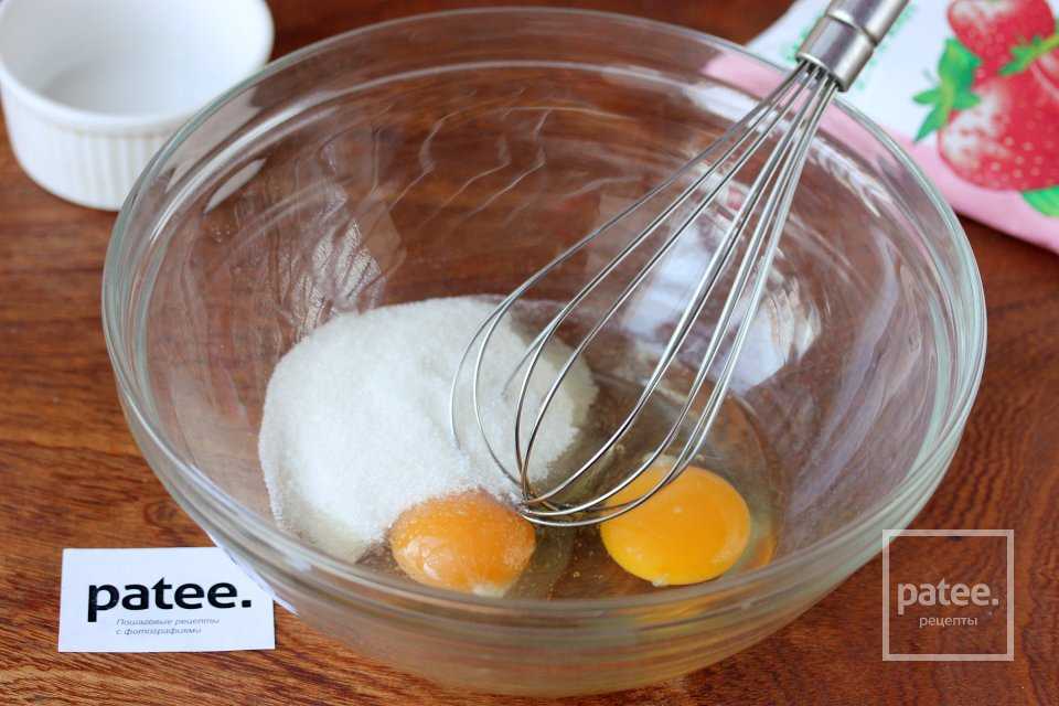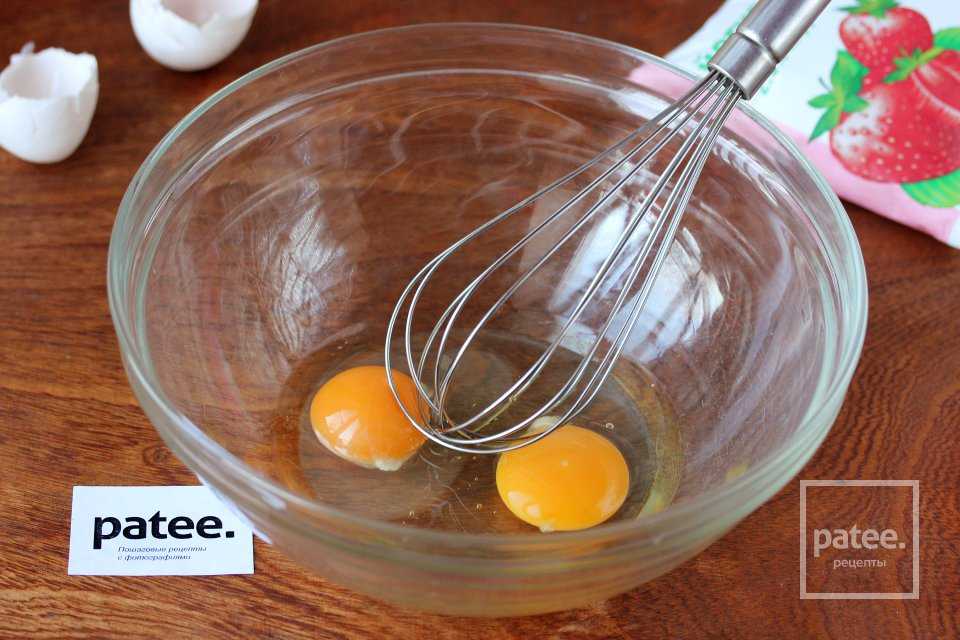 - Добавляем яйца и хорошо взбиваем массу венчиком.