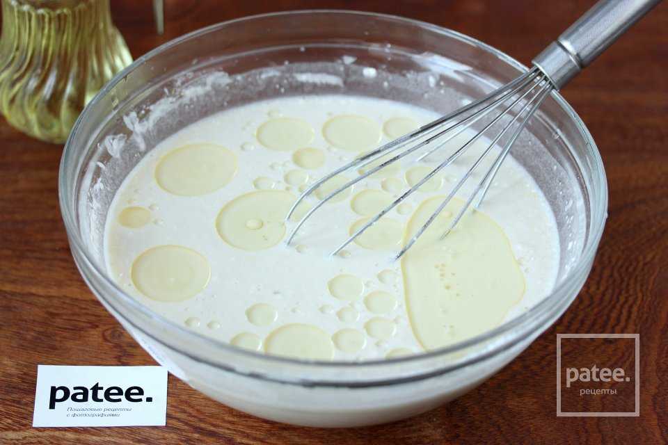 - Осталось влить масло, хорошенько взбить и можно переходить к жарке блинчиков.