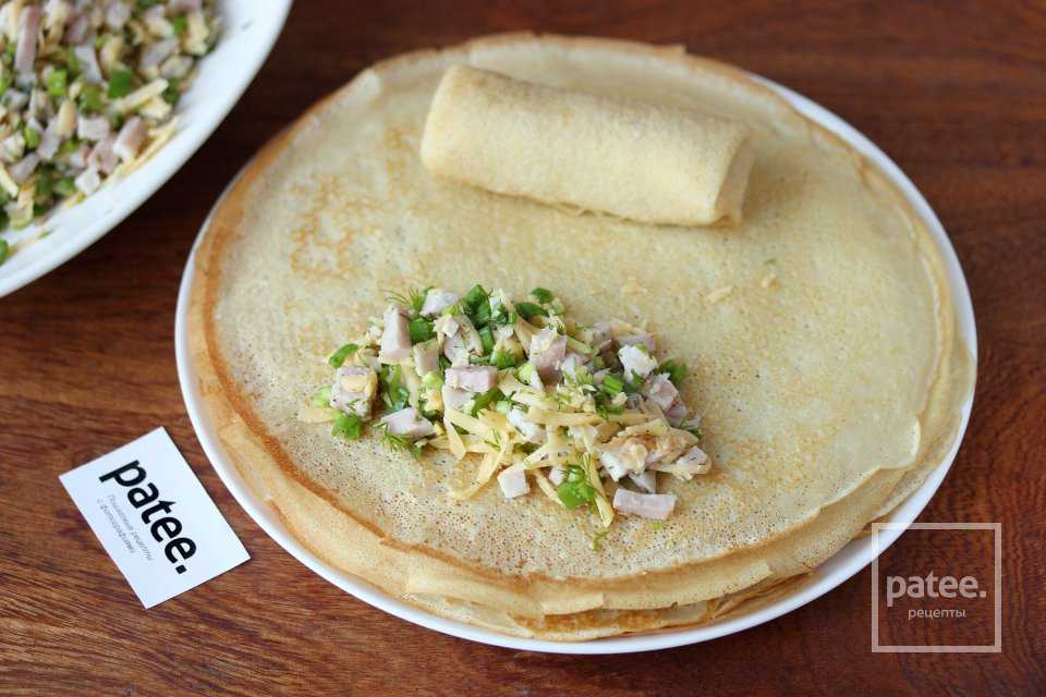 Рецепт пошагового приготовления блинов с ветчиной и сыром