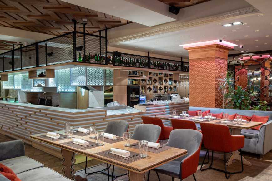 За элегантный и минималистичный интерьер, наполненный европейским модерном с восточными деталями, отвечал дизайнер Валерий Лизунов из архитектурного бюро Archpoint. У него получилось создать светлое помещение, где приятно посидеть днем, а также вечером: атмосфера становится более уютной и слегка таинственной.