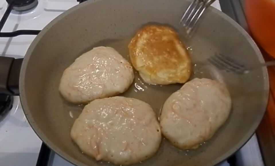 - Поставьте на плитку сковородку. Налейте масло. Выложите тесто в емкость кружочками и жарьте до золотистой корки.