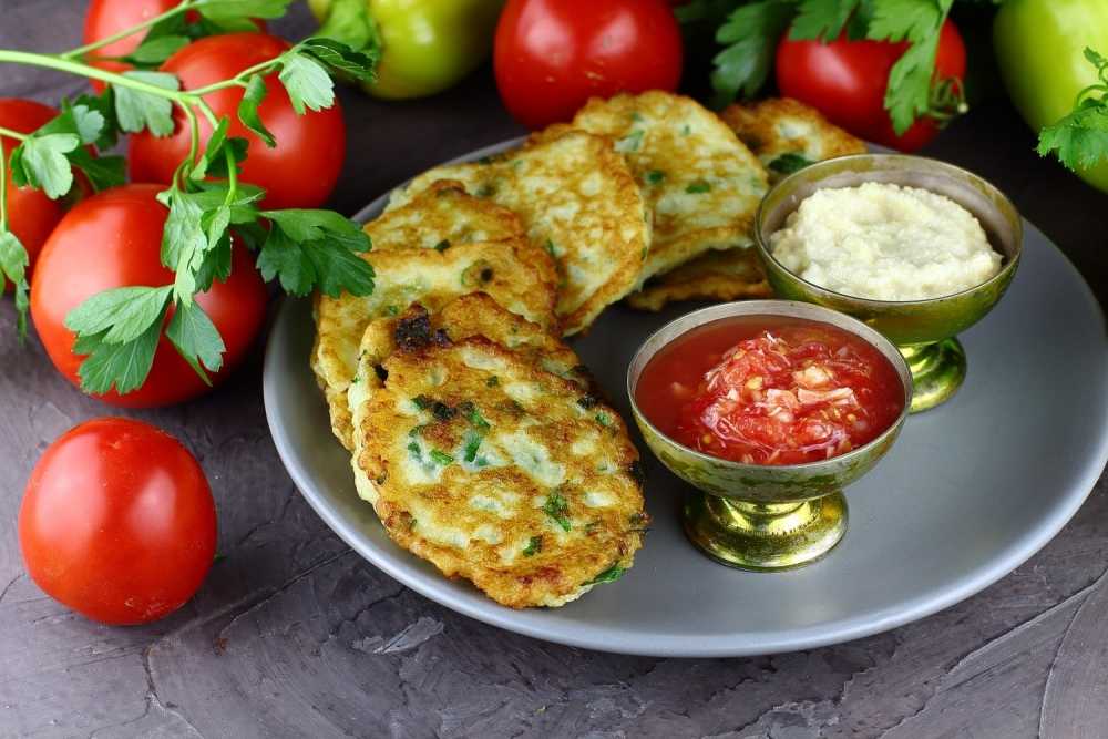 - Закусочные оладушки можно сразу подавать на стол. Они прекрасно сочетаются со сметаной, томатными соусами или красной икрой.