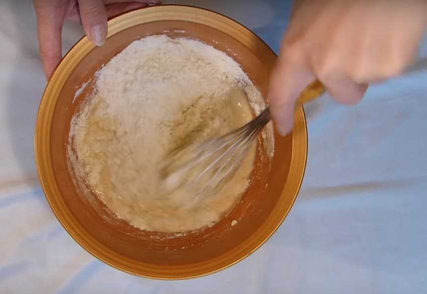 - Постепенно вводите муку небольшими порциями. Это позволит вам избежать комочков.