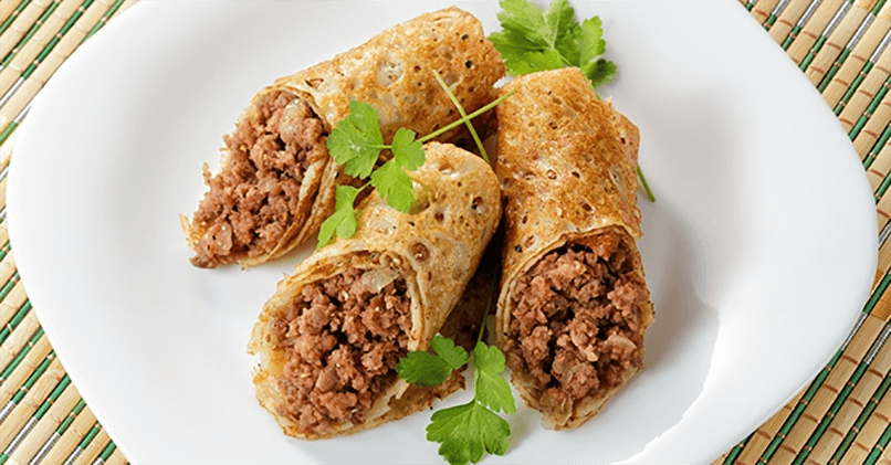 Спасибо за внимание. Давайте сегодня рассмотрим подробно как можно приготовить блинчики с мясом, какое лучше сделать тесто для них, какую начинку выбрать: из мясного фарша или куриного, как приготовить начинку, как правильно завернуть, чтобы при дальнейшей обжарке она не выпала, варианты подачи и сервировки. Постараюсь описать рецепт пошагово и показать все фото