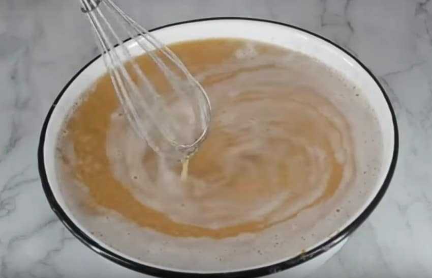. Перемешайте до получения однородной смеси. - Добавьте в смесь муку