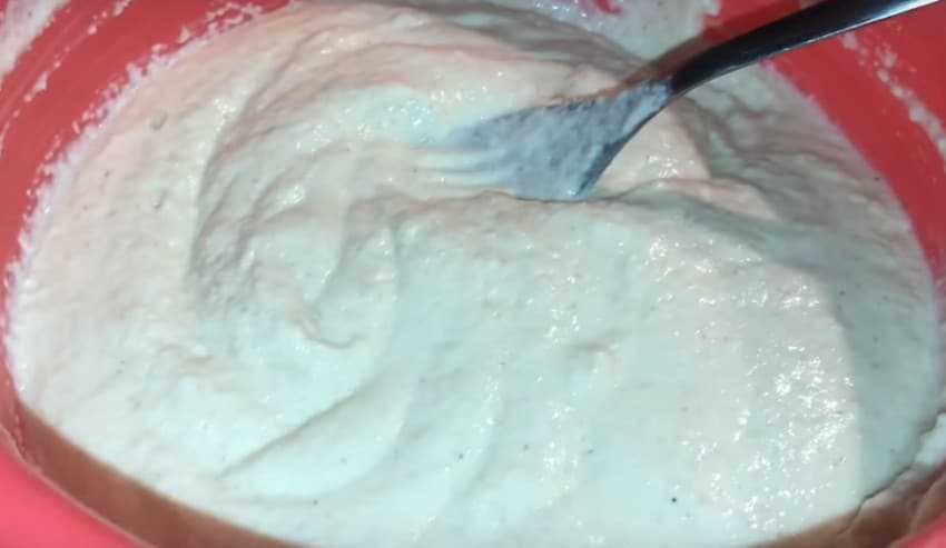 7. Затем добавляем муку. Консистенция должна быть не густой;