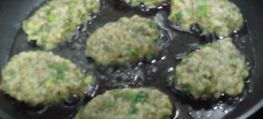 Смоченными в воде руками формируем оладьи и обжариваем их на растительном масле с двух сторон до золотистой корочки.