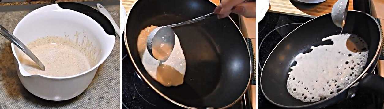 3. Тем временем готовим сковороду: хорошенько прогреваем ее и смазываем растительным маслом. Тесто наливать на очень горячую сковороду.