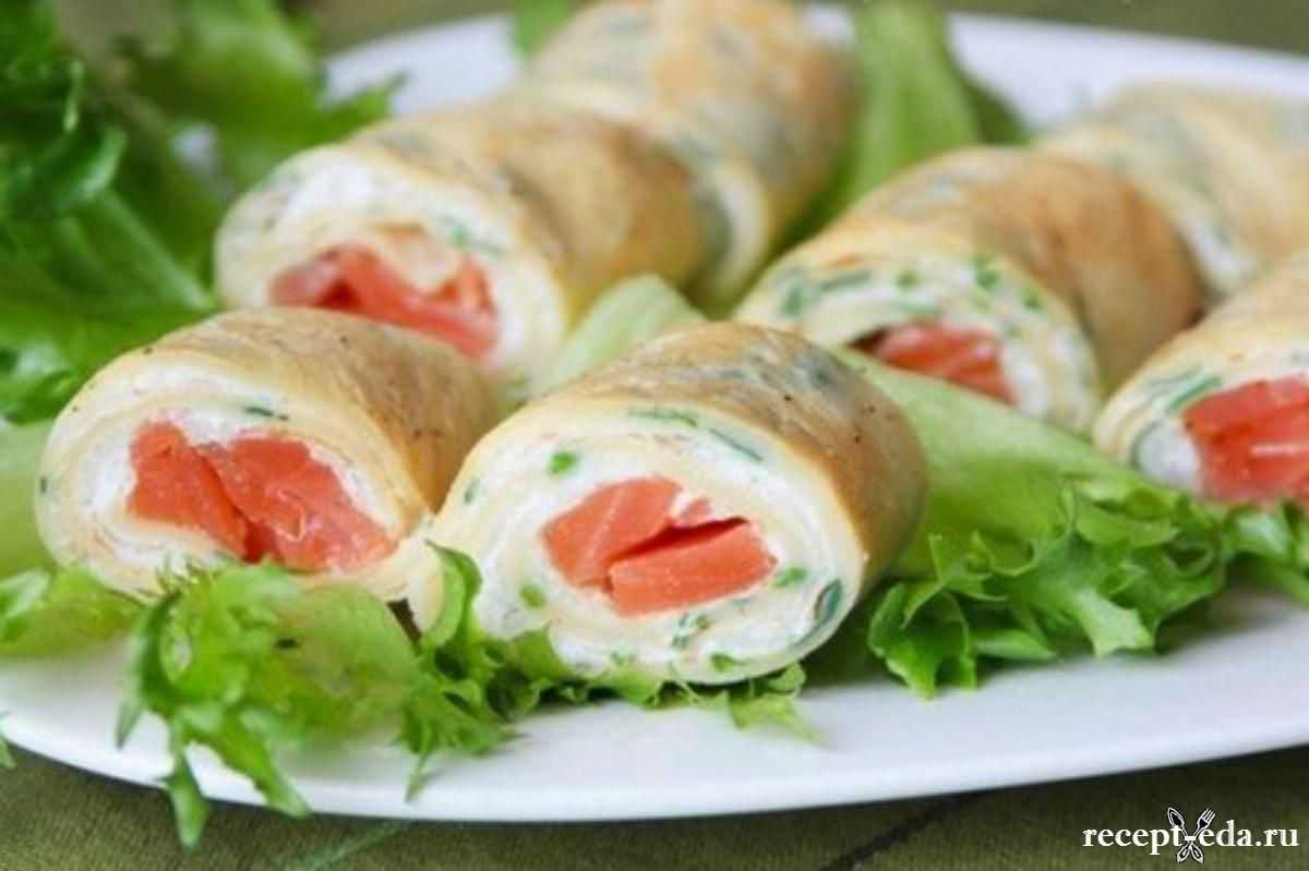 Чтобы приготовить закуску из блинов с семгой, вам будет необходимо: