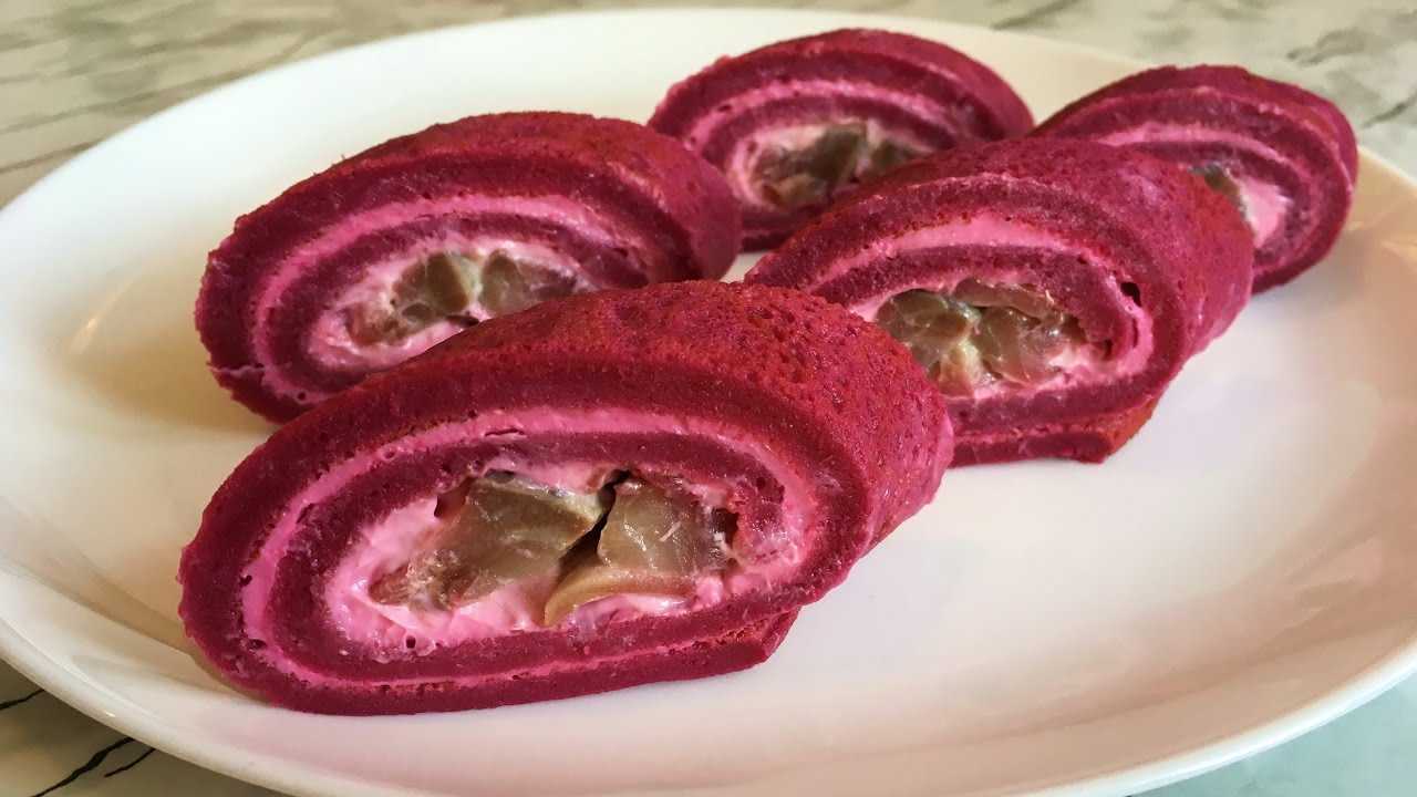 Горячим рулетам даем остыть 5-7 минут, а затем режем на нужное нам количество частей, в зависимости от того, как собираемся подавать.