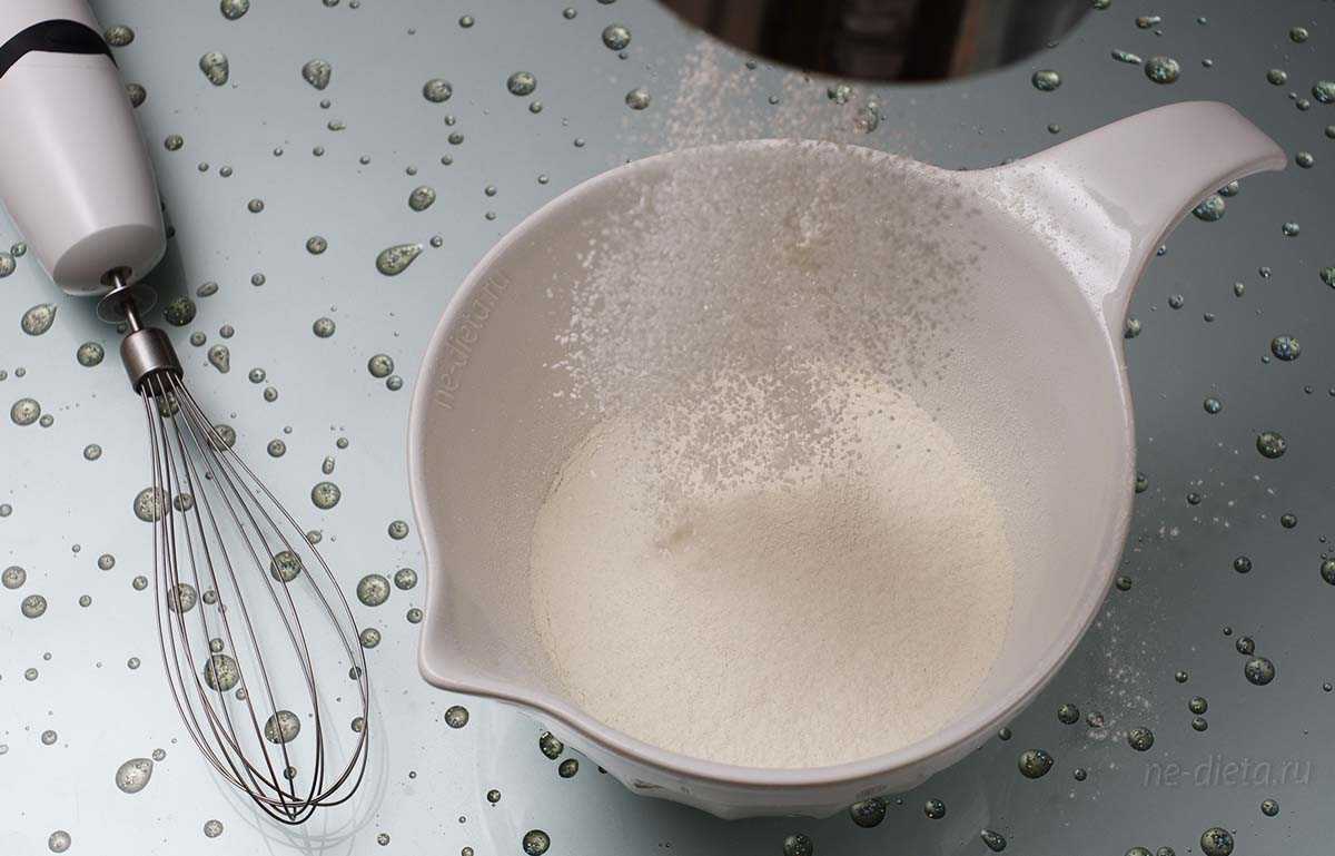 2. Всыплем разрыхлитель и пшеничную муку. Еще раз взобьем. По желанию можно добавить ванильный сахар, молотую корицу, различные ароматизаторы.