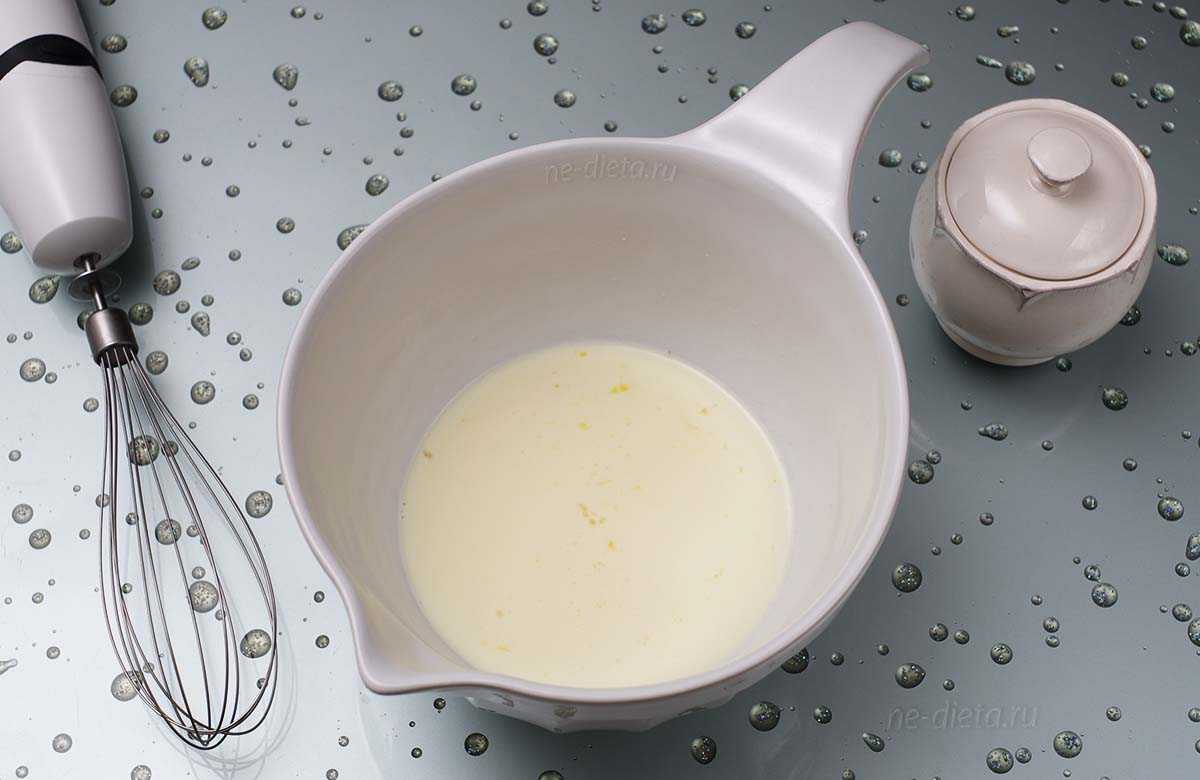 - Всыпаем в массу сахар и перемешиваем при помощи миксера на небольшой скорости.