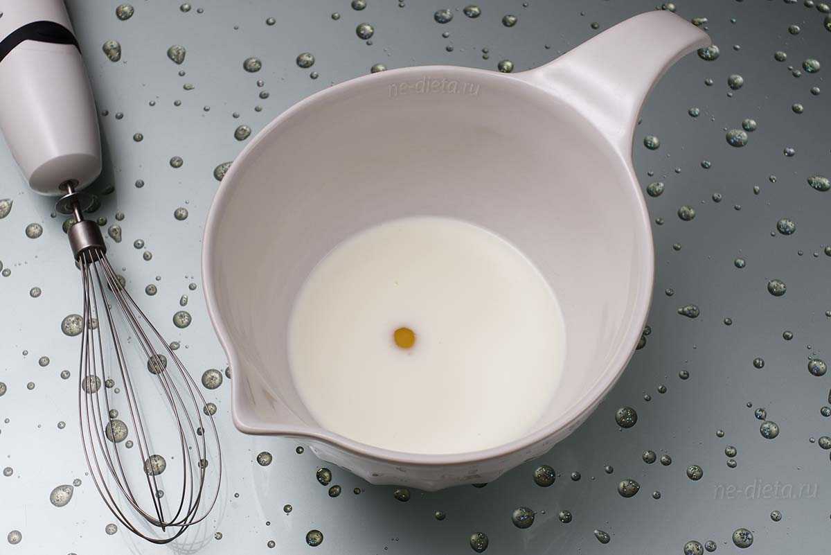 - Вбиваем яйцо и добавляем к нему молоко комнатной температуры.