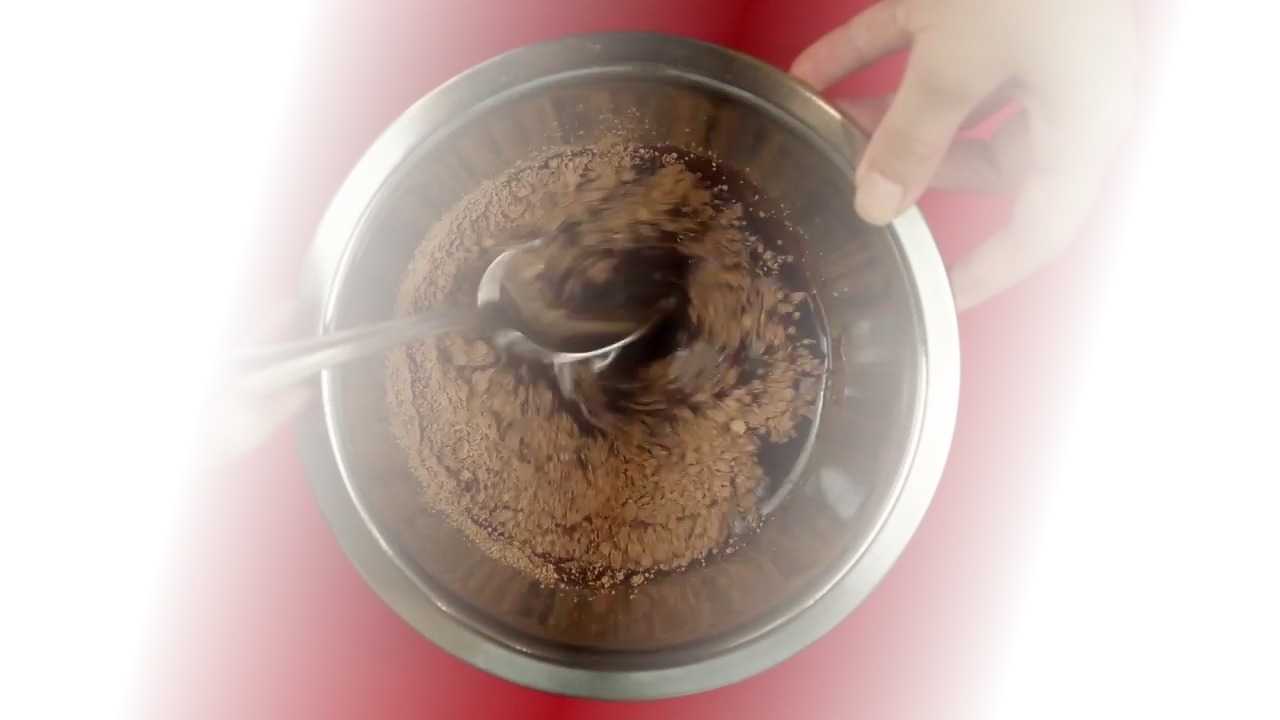- Засыпьте порошок какао, муку, налейте масло. Замесите тесто без комочков.