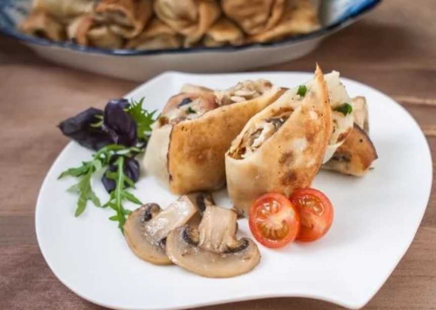 Как пошагово нужно готовить сочную грибную начинку для сытного блинного рулета