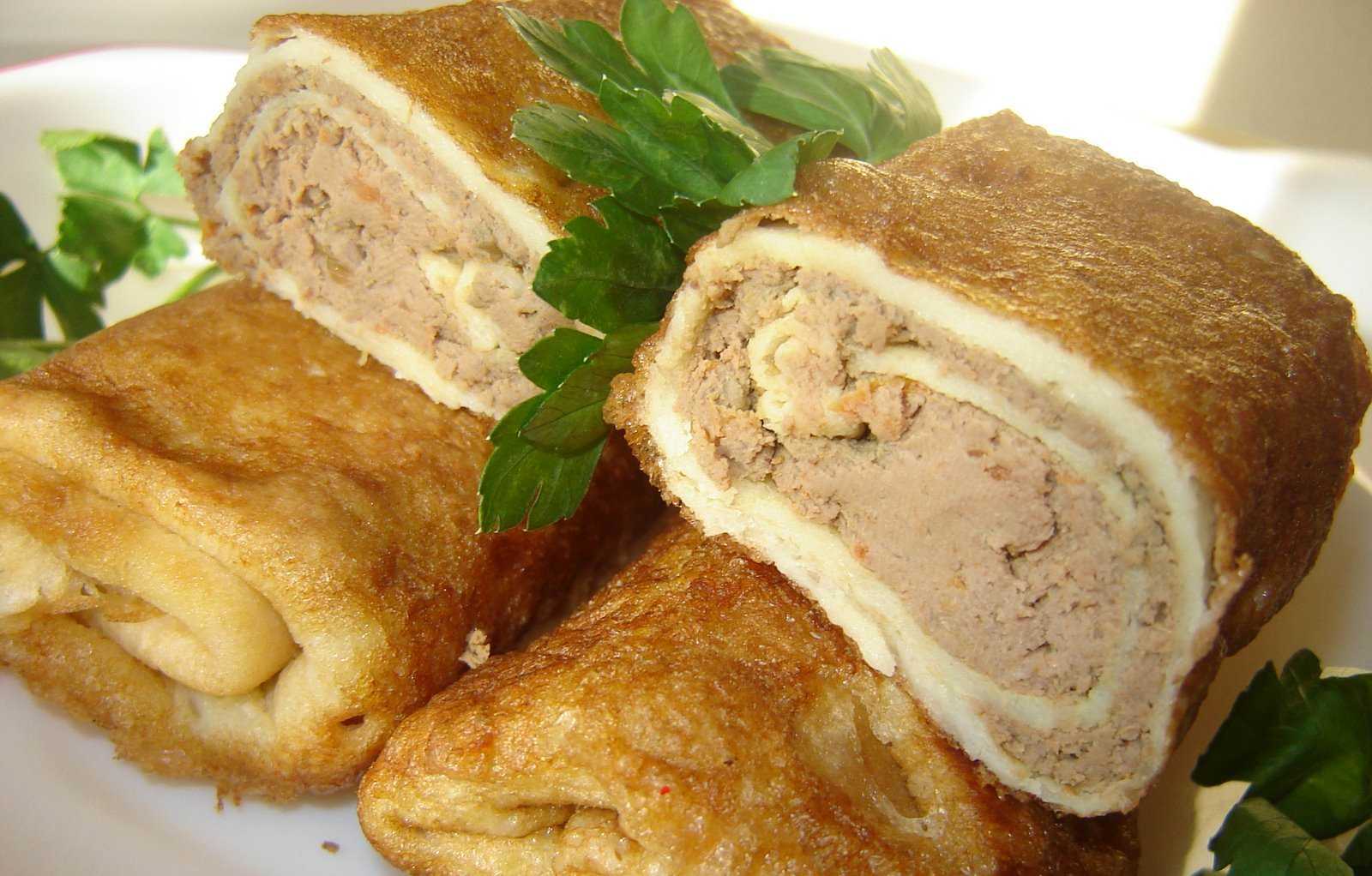 Недорогая, вкусная и даже полезная закуска из куриной печени подойдет и для повседневного меню, и для праздничного или фуршетного стола. В процессе приготовления из печеночного фарша выпекаются блинчики. А закуска подается в виде рулетиков с начинкой внутри.