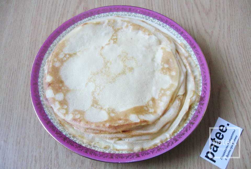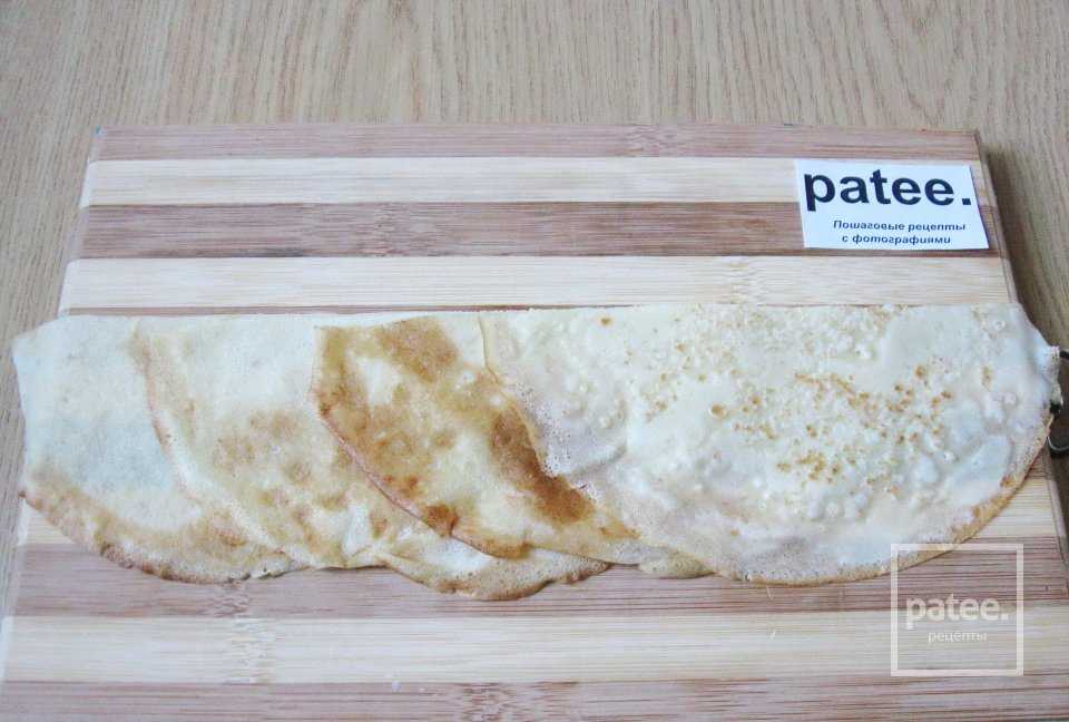 Выпекаем из полученного теста тонкие блинчики.