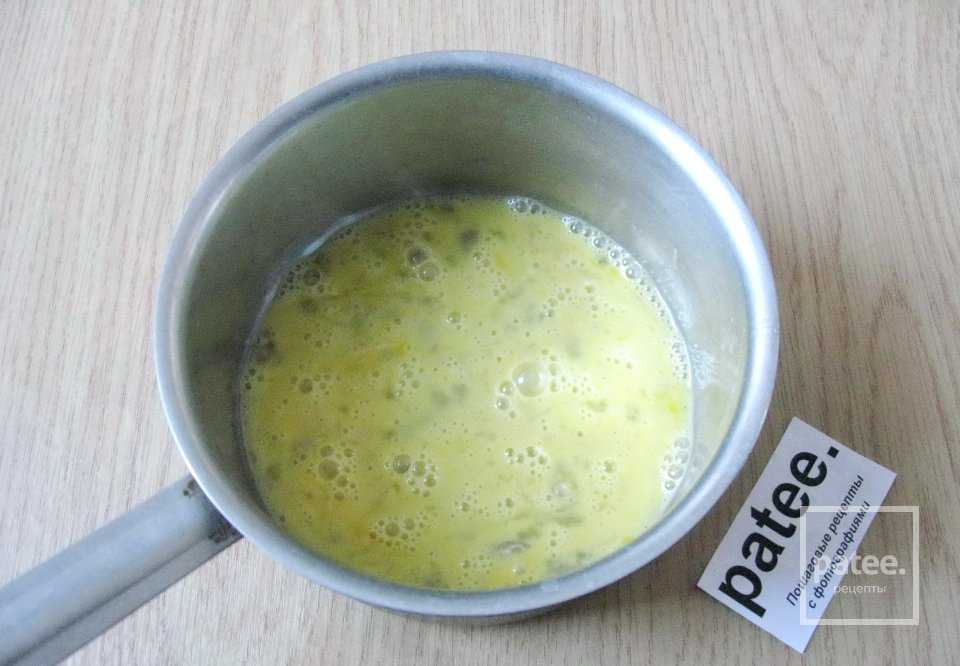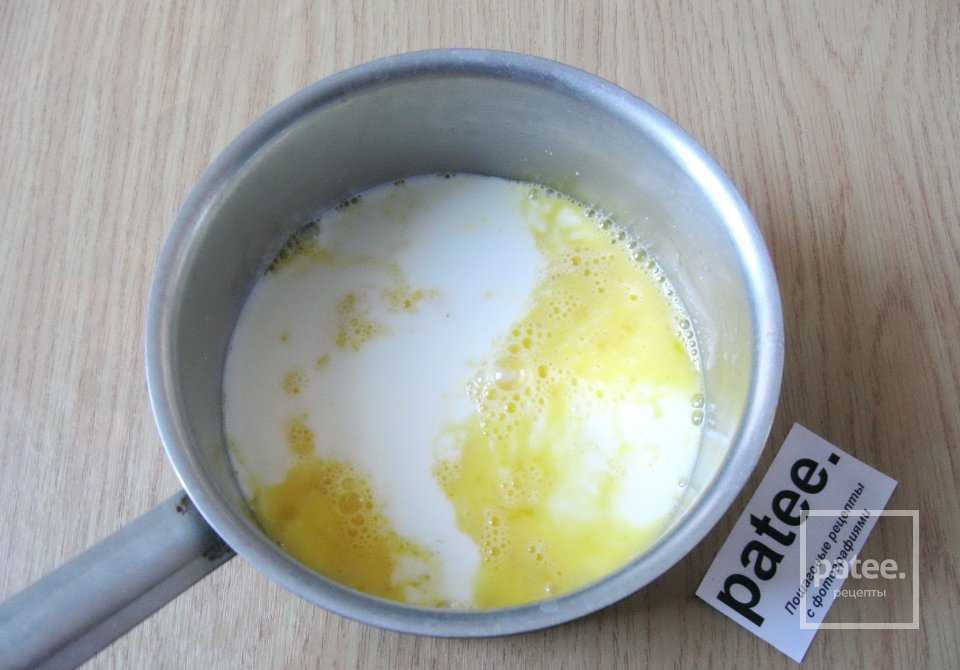 К яйцам наливаем в кастрюлю один стакан молока.