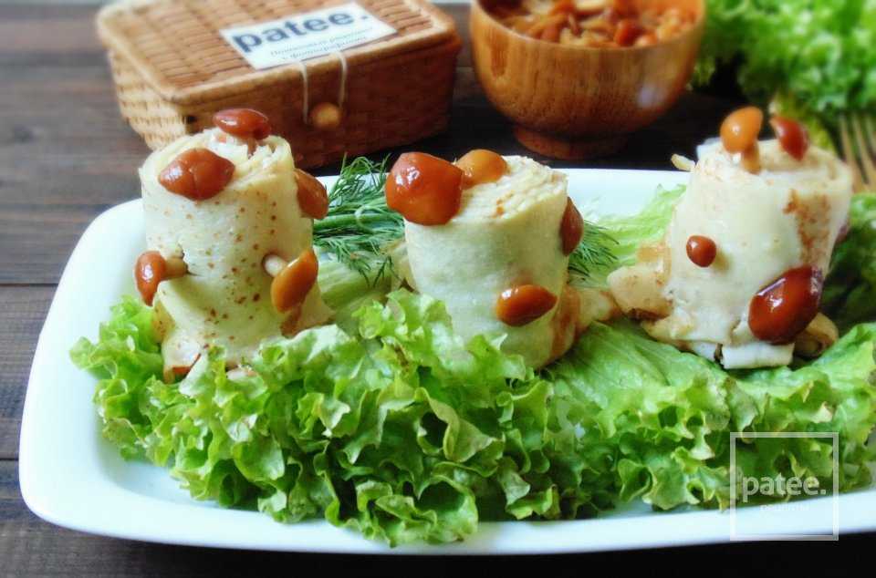 Замечательная закуска из блинов “Пенёчки” готова. Кстати, начинку можно делать любую по вашему вкусу и наличию продуктов в холодильнике. Хороших вам праздников и приятного аппетита!
