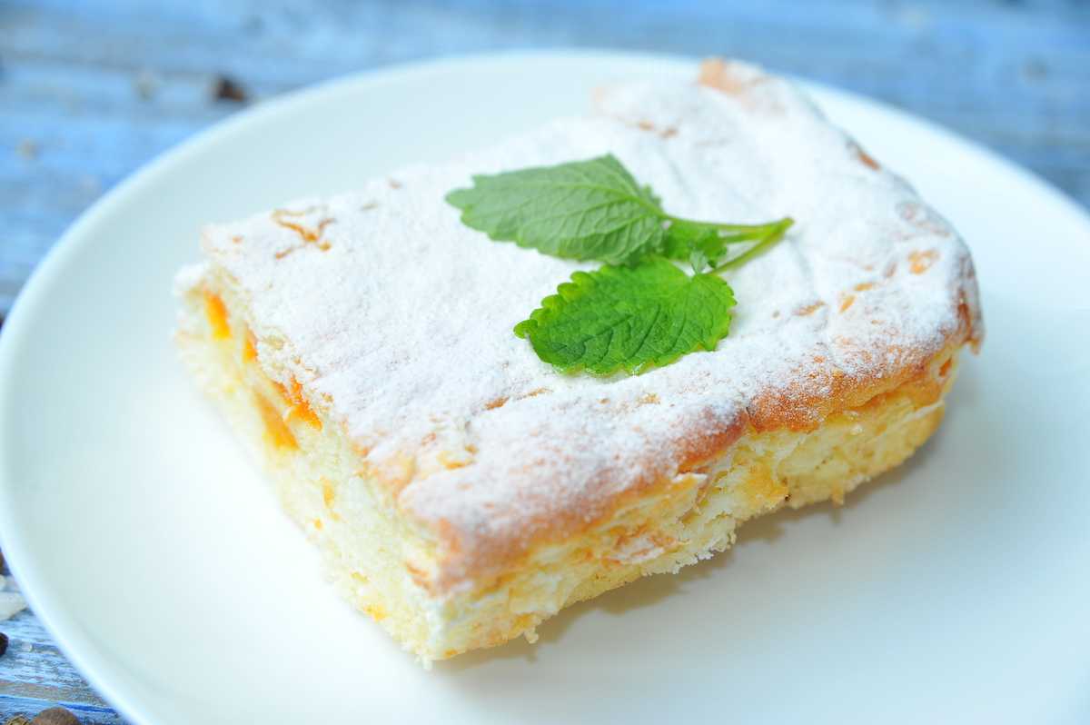 - Подавать королевскую творожную запеканку на стеклянной подставке для торта на белой салфетке.