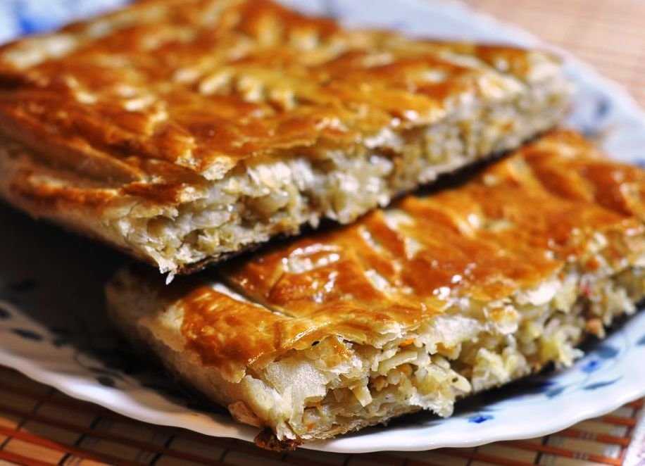 5. Пирог ставим в разогретый до 200 С духовой шкаф на полчаса. Готовый пирог остужаем и режем кусочками.
