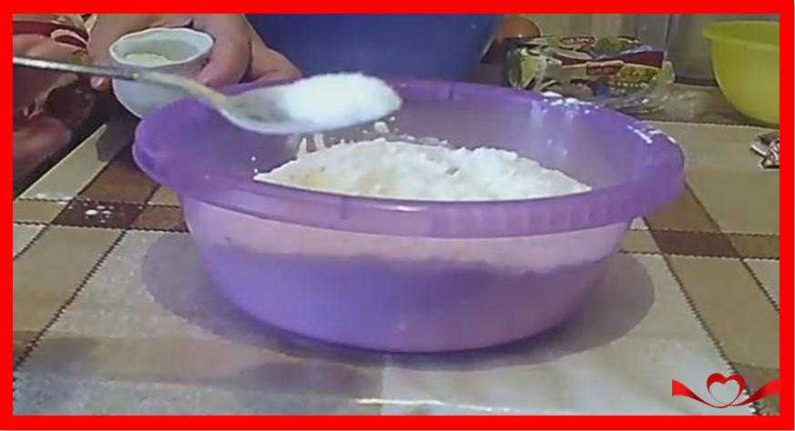 Если мука лежалая, то ее желательно предварительно просеять. Далее соедините ее с разрыхлителем и 1-2 щепотками соли.