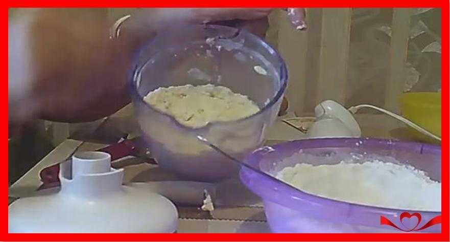 - Далее в будущий пирог добавляют муку. Её всыпают постепенно, добиваясь получения достаточно пластичной массы.