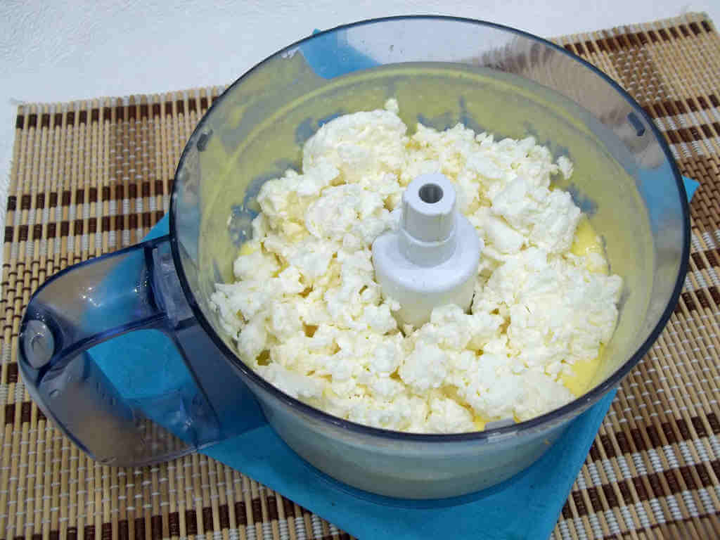 Снова взбивайте составляющие, чтобы разбились все творожные комочки, и масса приобрела гладкость.