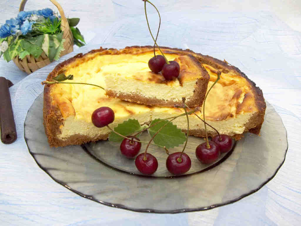 Основа сладости обычно выпекается из перемолотого печенья. Такой корж служит дном для изделия и впитывает влагу творожной начинки. Печеный пирог лучше остудить до комнатной температуры, а после выдержать в холодильнике 8-12 часов.
