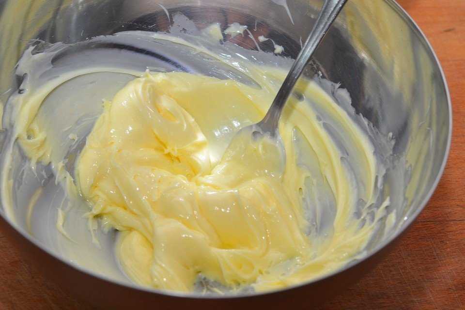 - Первоначально размягчают масло.