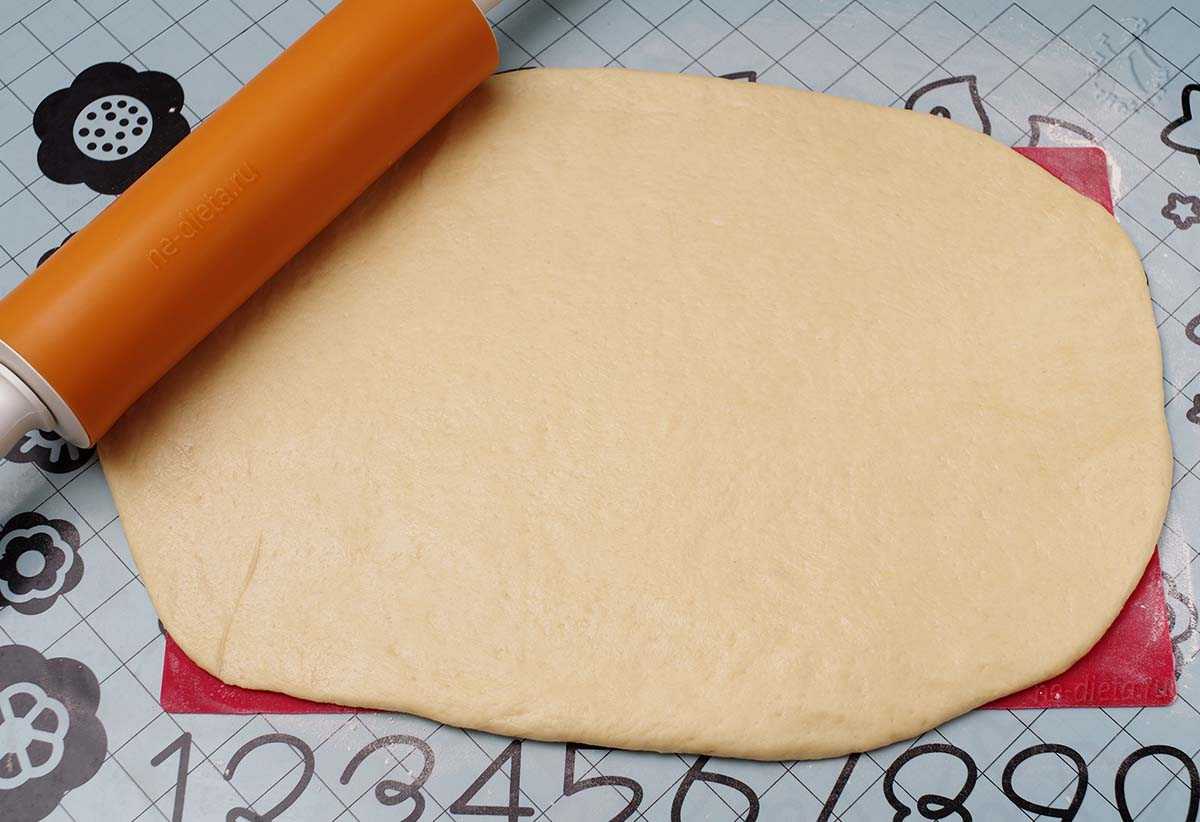- Раскатываем тесто скалкой. Я сделала размер примерно 30х20 см.
