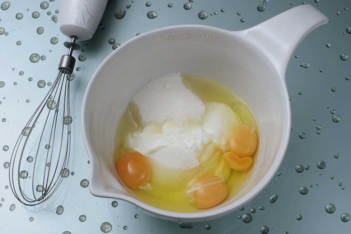 Тем временем взбиваем остальной сахар с яйцами венчиком.