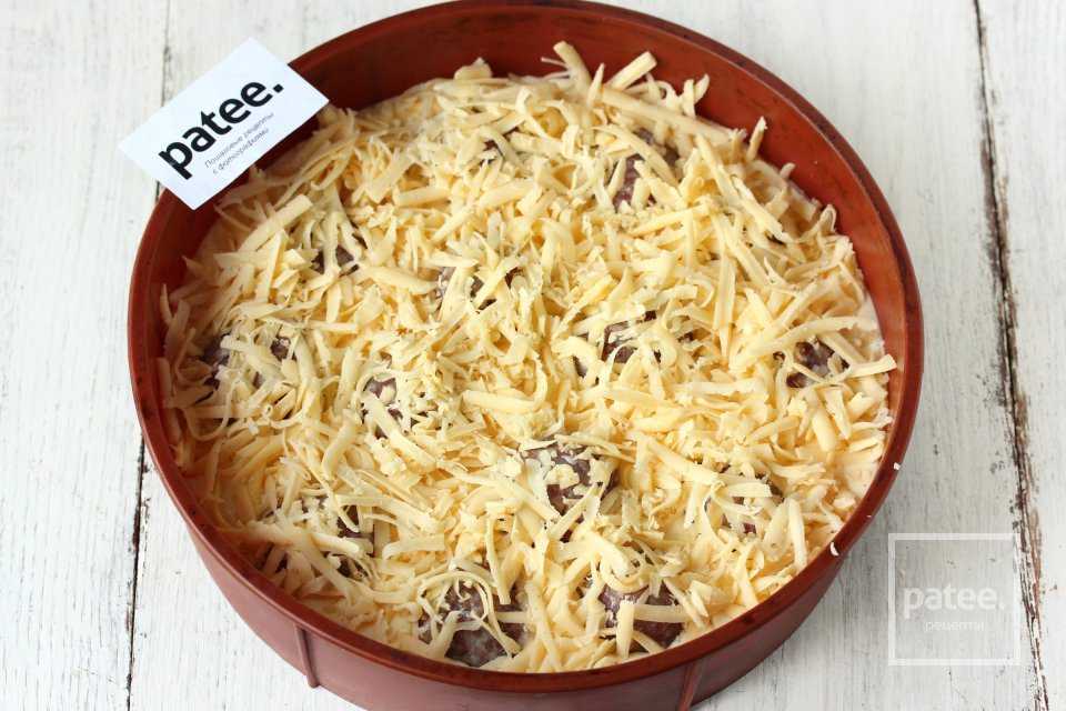 - Фрикадельки заливают соусом и отправляют в разогретую до 180 °С 40-40 мин. Чтобы блюдо было покрыто румяной корочкой, за 10 мин до готовности его посыпают тертым сыром.