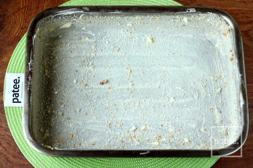 Посыпаем смазанную маслом форму панировочными сухарями, и дно, и бортики.