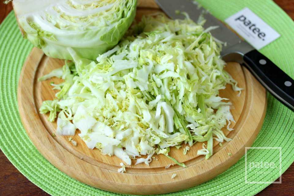 - Капусту белокочанную (или пекинскую) тонко нашинкуйте ножом или на машинке.