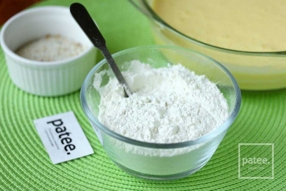Перемешиваем муку с крахмалом и разрыхлителем.