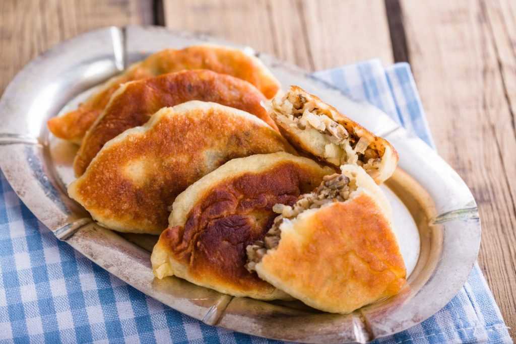- Из теста выполнить лепешки, в центр каждой выложить начинку и защипать края. Жарить пирожки в большом количестве масла с обоих боков до зарумянивания.