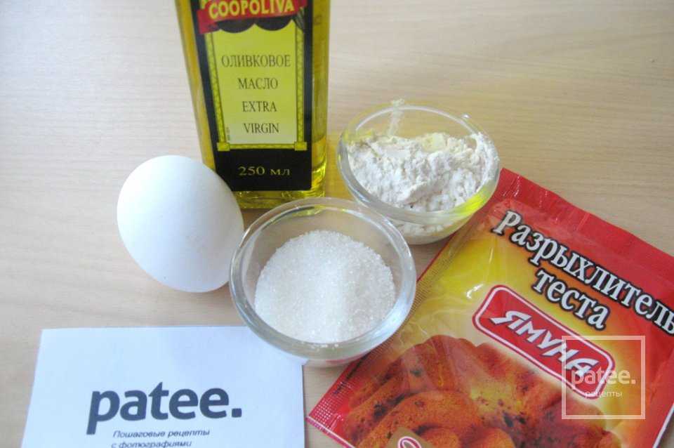 Для приготовления такого пирога понадобятся: масло оливковое Еxtra Vergine, яйца, мука, разрыхлитель теста, сахар.